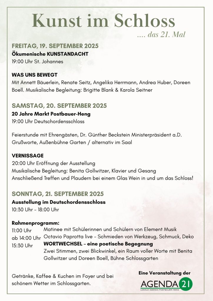 Ich darf an unserer diesjährigen Kunstausstellung im Schloss am 2. und 3. Juli 2022 teilnehmen.